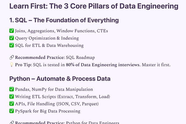 Use this roadmap to build your first DE portfolio & land your first offer — without a CS degree or 5 YOE. Designed by Avantikka Penumarty (Ex-META …
