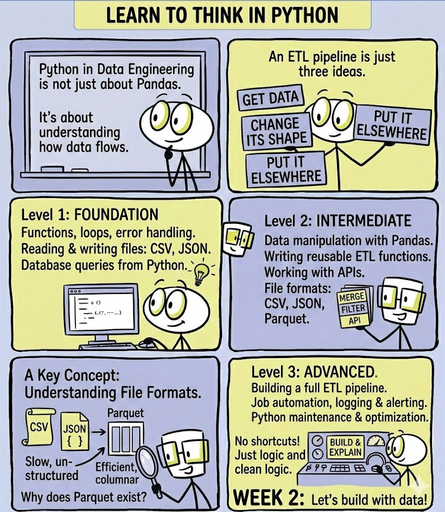 Python in Data Engineering is not about knowing Pandas. It is about understanding how data flows through a system.